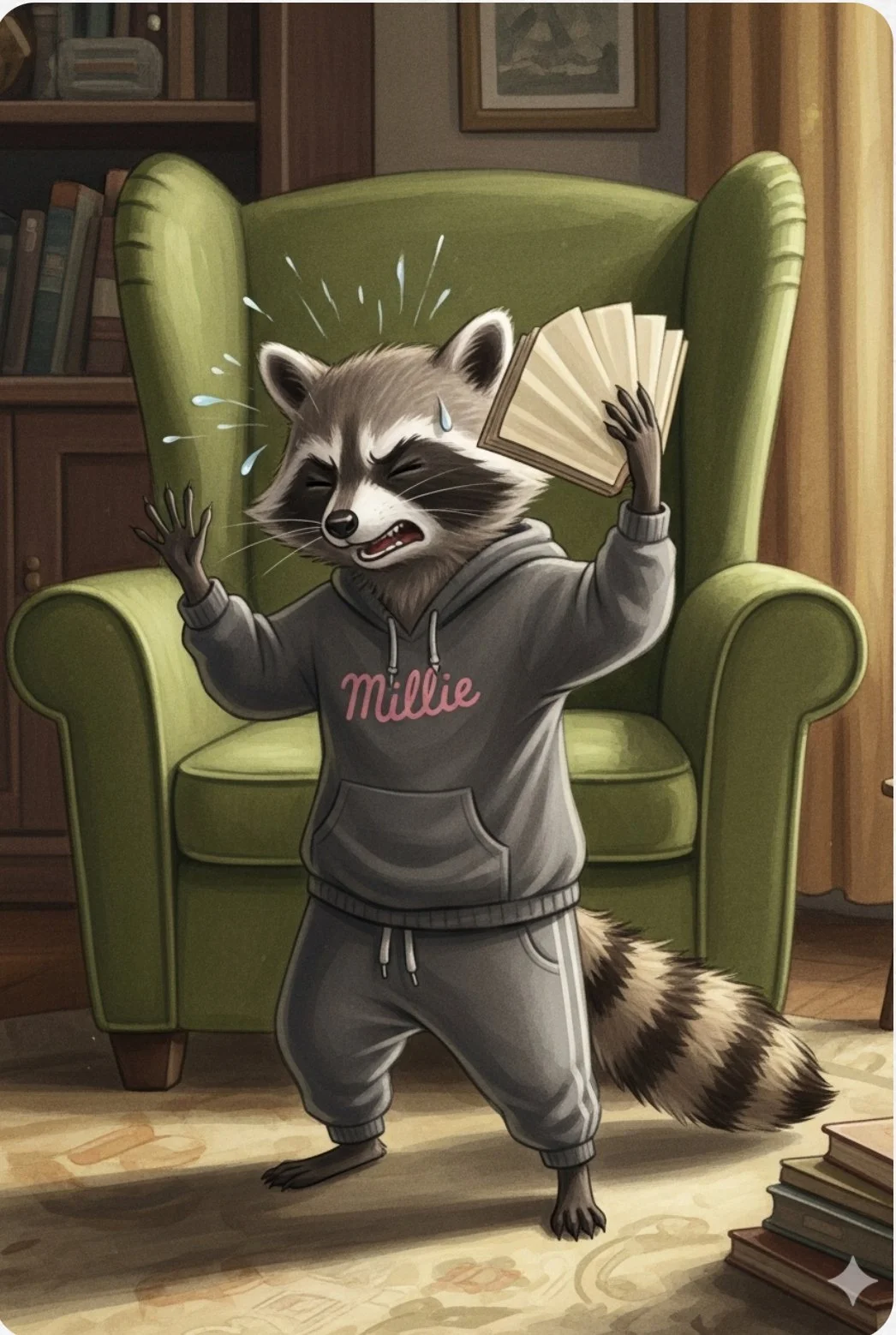 Manic Menopause Millie was trying to enjoy a perfectly normal evening in her perfectly normal armchair. The book was thrilling ("101 Uses for a Shiny Bottlecap"), the lighting was dim, and the snacks were within reach. All was calm. Until it wasn't. A strange warmth began to bloom in her chest, a creeping heat that had absolutely nothing to do with the radiator.